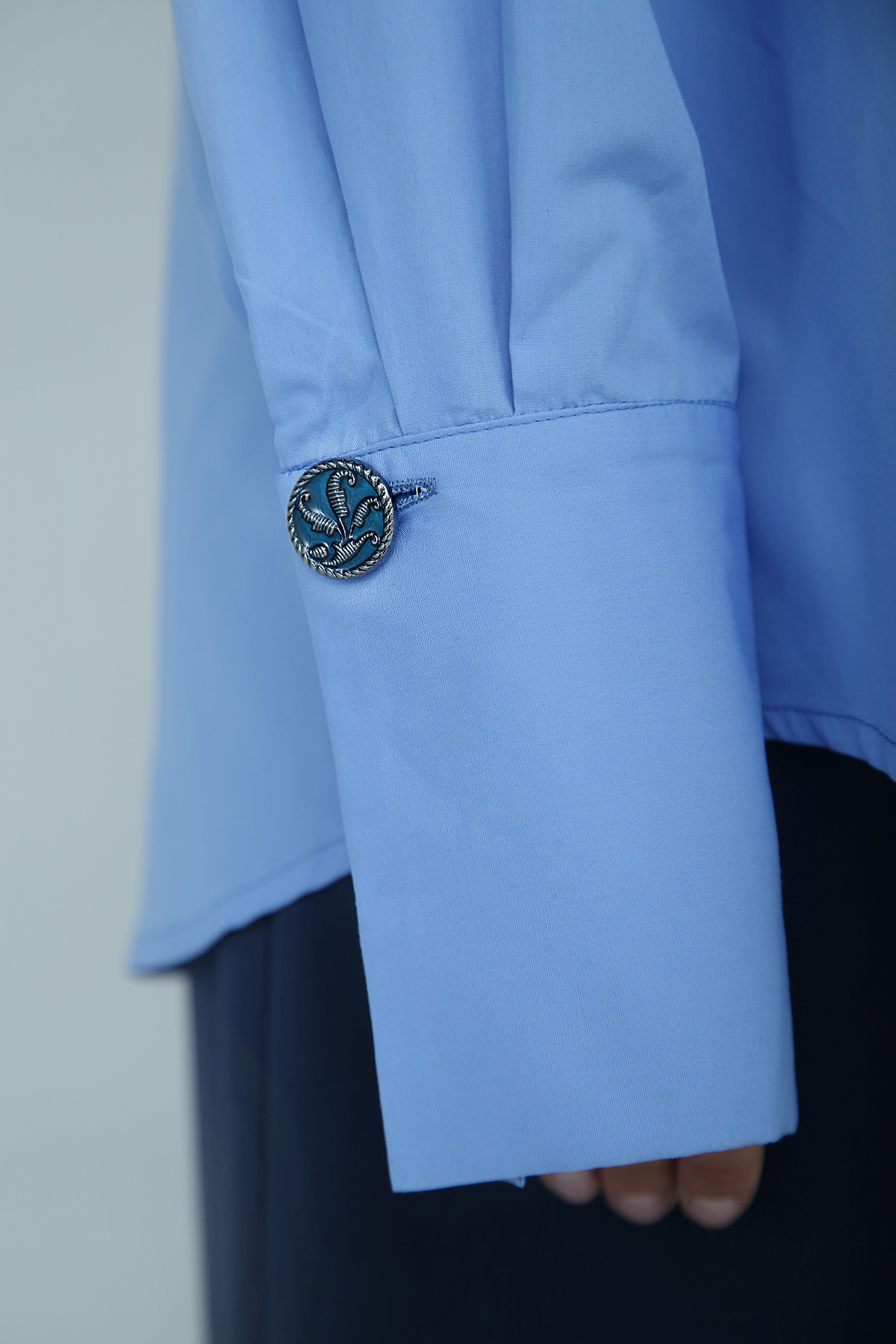 DescrizioneCamicia in popeline di cotone, dal taglio over, con vestibilità morbida impreziosita da polsini con bottoni dal design contemporaneo. Internamente, l'opzione dei lacci permette di personalizzare lo styling, offrendo versatilità e originalità a chi indossa questo capo unico.