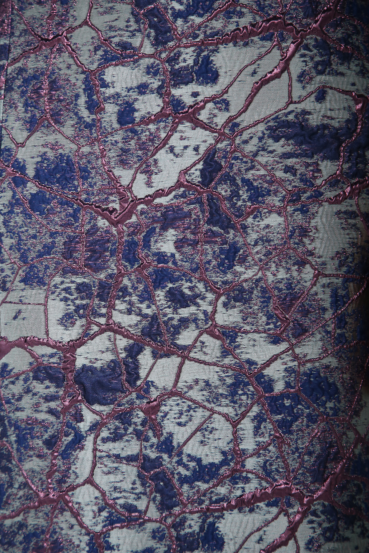 Gonna lunga a vita alta realizzata in prezioso broccato dalla linea leggermente svasata, con due spacchi sul davanti.